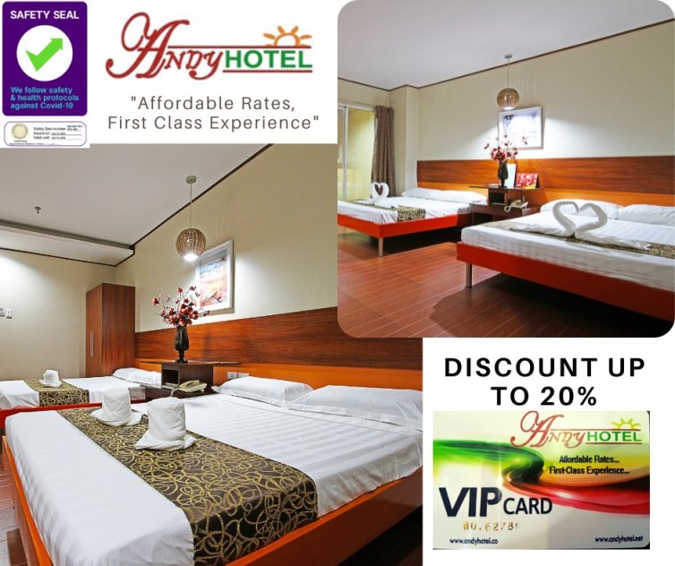 Welcome to Andy Hotel, we have 71 rooms starting from the Adorable Standard Room good for 2 people up to the Awesome Family Room that is good for 5-6 people. Rooms come with cable TV, hot and cold showers and free wifi.